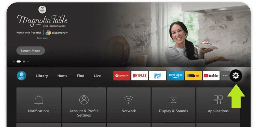 Return on the main screen in FireStick after you have installed the Downloader app. in the main menu, select Settings.